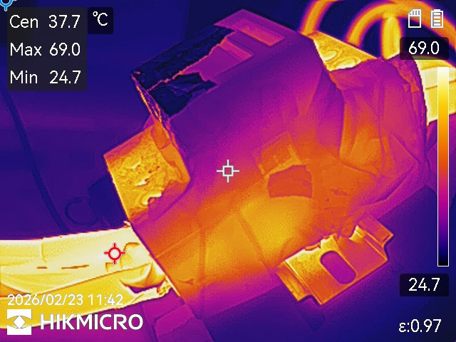 Thermal imaging adds the spatial dimension: it reveals hotspots that point measurements can miss, particularly at terminal interfaces and along high-current PCB traces. A thermal image taken during a certification run is not redundant documentation. It is evidence that the design margin is real.