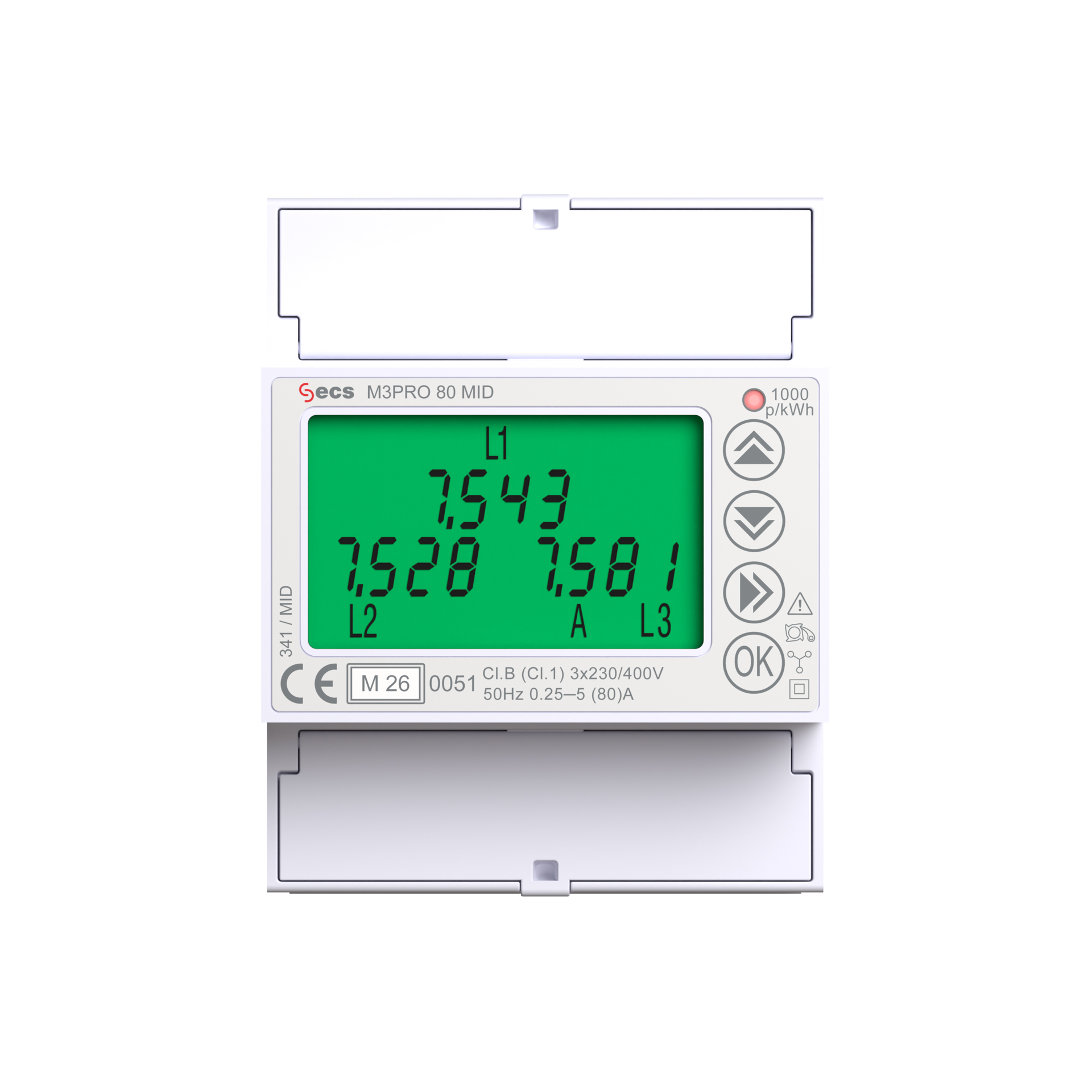Contatore di energia digitale trifase con 2 tariffe di esercizio e 2 uscite S0 proporzionali a energia attiva/reattiva o importata/esportata.